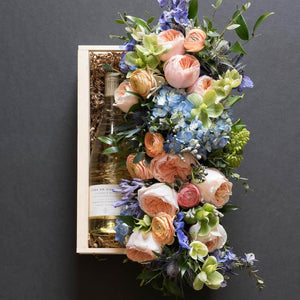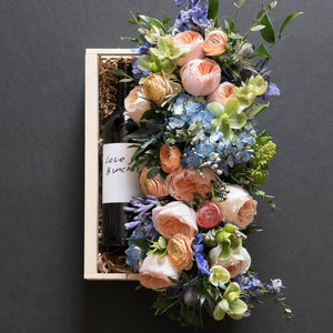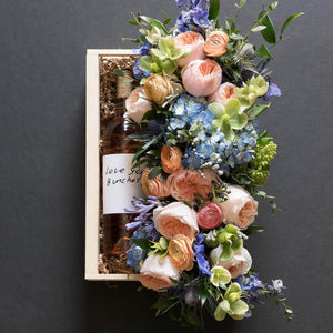 Box size: 15’’L x 9"W. Floral arrangement: 17"L X 6"W approx.
