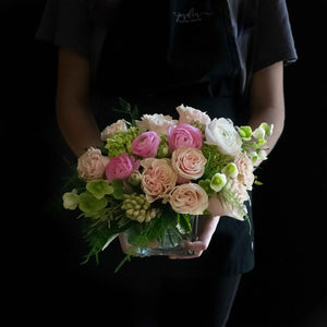 Lovely! Soft and delicate, Blush Sweet is designed with gorgeous Clooney ranunculus, fragrant hyacinths, roses and a mix of beautiful textures.