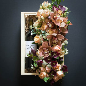 Box size: 15’’L x 9"W. Floral arrangement: 17"L X 6"W approx.
